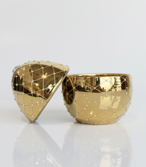 Made of ceramic with hot stamping printing and decorated with rhinestones, following the exclusive and elegant design line of this sophisticated collection.